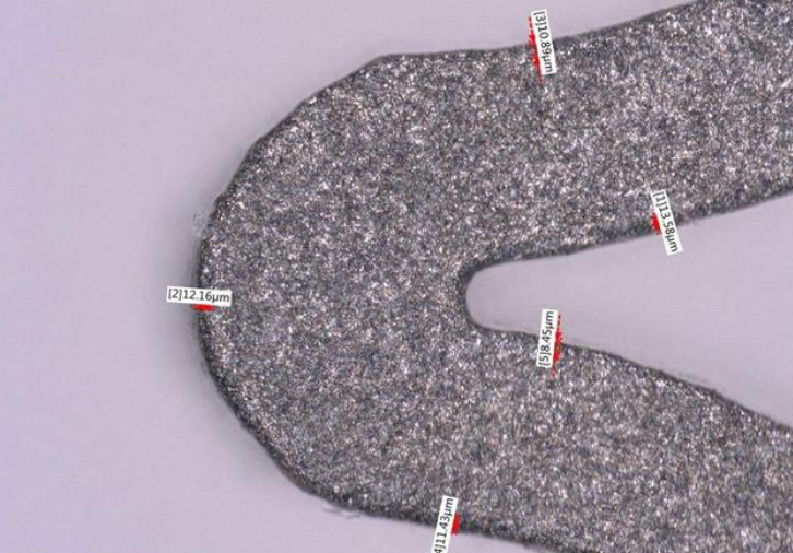 - 最近的支架设计和医疗植入物要求更大的边缘倒圆角。圆形边缘降低了被植入物卡住,其他风险的可能性。氧化铝微喷丸的半径为5-15 m,但新的几何尺寸指定为接近25 m。该半径可以通过三种途径实现:延长喷砂周期,使用更大尺寸的氧化铝或完全使用其他磨料。